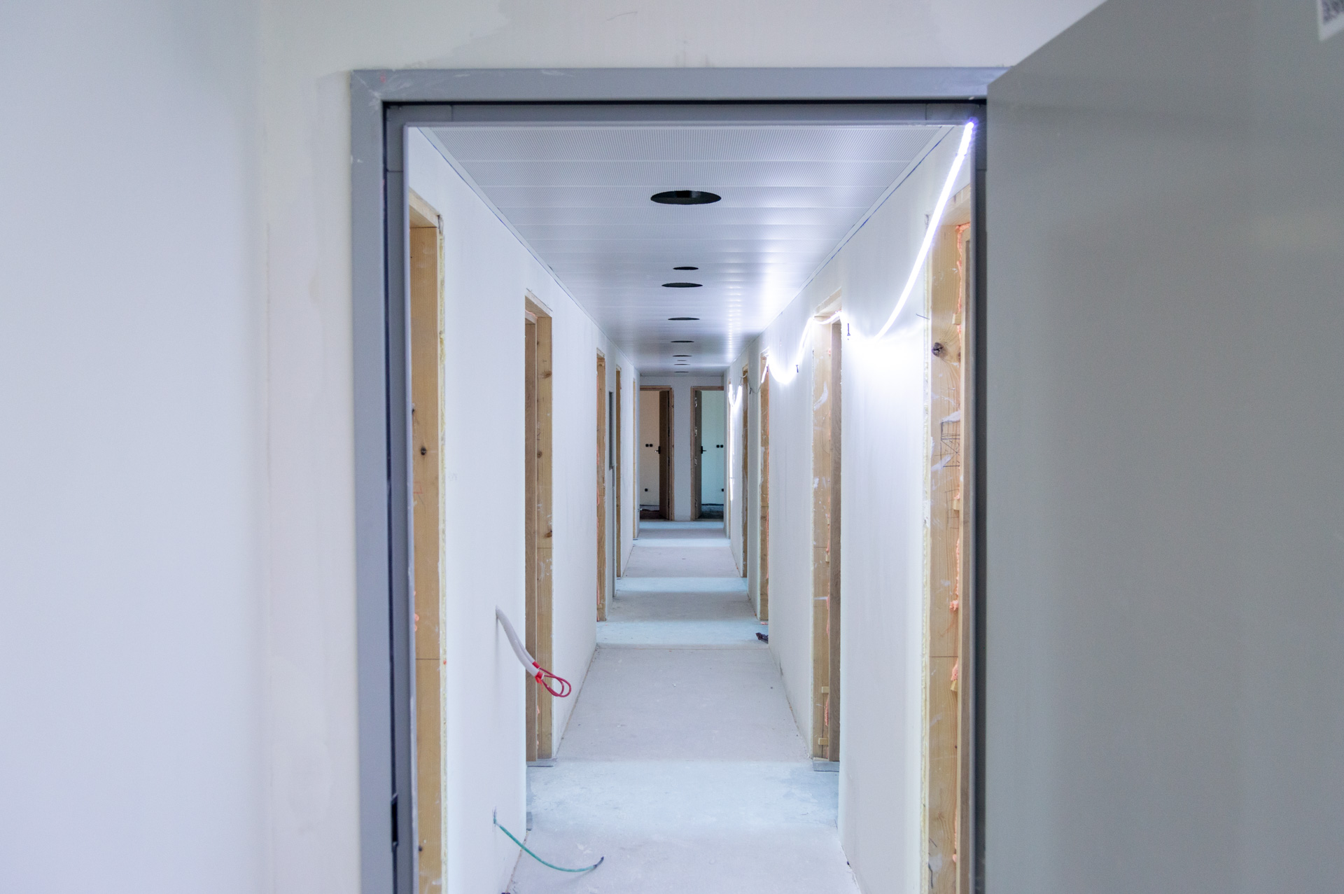 Ya han finalizado los trabajos de tabiquería interior de las 136 habitaciones de esta residencia de estudiantes construida por Ferrovial. La rapidez de ejecución de PanelSystem® ha sido un factor decisivo en el éxito de este proyecto.