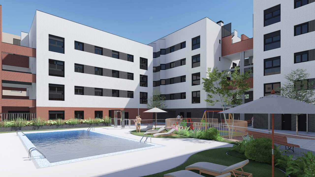 Residencial Cytra es la nueva promoción de 30 viviendas VPPL de Fogesa y construida por Alza ubicada en el barrio del Bercial de Getafe en Madrid. Un moderno diseño de urbanización privada que cuenta con garaje independiente, piscina de recreo, zonas ajardinadas y área infantil.